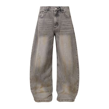 बैगी धोया जींस पुरुषों का सीधा पैर विंटेज 100% कपास कस्टम ग्रीष्मकालीन स्प्रे पेंट किए गए स्ट्रीटवियर फ्लेयर