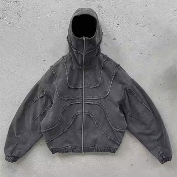 Качественная индивидуальная маска с молнией Y2K в стиле ниндзя с принтом глаз Мужская свободная толстовка с капюшоном